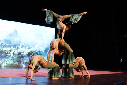 中國雜技團的王洋、袁飛、高學峰、陳雅樂等帶來的高難度雜技《騰?韻-頂碗》,曾獲得過有“雜技奧斯卡”之稱的“金小丑”獎,融技術、舞美、音樂于一體,展示了中國藝術家敢于挑戰、勇攀藝術高峰的情懷。