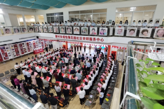 “我們讀中國,沿著甲骨文滄桑的紋理,駕馭歷史的廠車縱橫阡陌;我們讀中國,在人之初,性本善的《三字經》里,學會做人的道理……”瑯瑯書聲出自怡海花園老年大學,百人齊聲《讀中國》將“全民閱讀進社區”活動主旋律高亢詠誦。