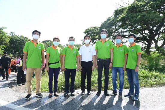 國會主席川立派閣下、伊沙拉國會議員、信武里府尹CHAI CHAN與泉州晉江聯合總會救援小組成員蔡上新、陳俞龍、許清流、洪世界、張孚杰、黃淑芬、許宗會