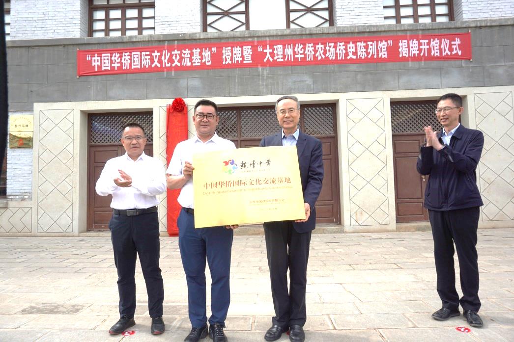 在賓川縣金牛鎮(zhèn)柳家灣華僑社區(qū)(原太和華僑農場)迎僑堂,大理州和賓川縣舉行“中國華僑國際文化交流基地”授牌儀式暨大理州華僑農場僑史陳列館揭牌開館儀式。萬立駿為基地授牌,參觀華僑農場僑史展陳,詳細了解當年創(chuàng)建華僑農場以及安置歸難僑的情況。