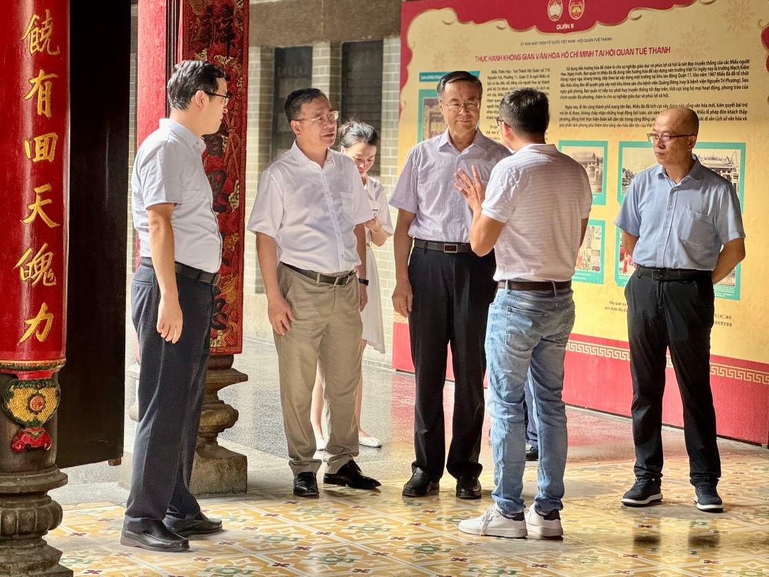在胡志明市,萬立駿集體看望當?shù)厝A僑代表,走訪豪士坊、穗城會館、義安會館,與大家共敘鄉(xiāng)情、共話發(fā)展。他表示,旅越華僑華人艱苦奮斗、落地生根,在實現(xiàn)自身事業(yè)發(fā)展的同時積極融入和回饋當?shù)厣鐣瑸樯罨性礁黝I域交流合作作出積極貢獻,為大家取得的成就感到高興。