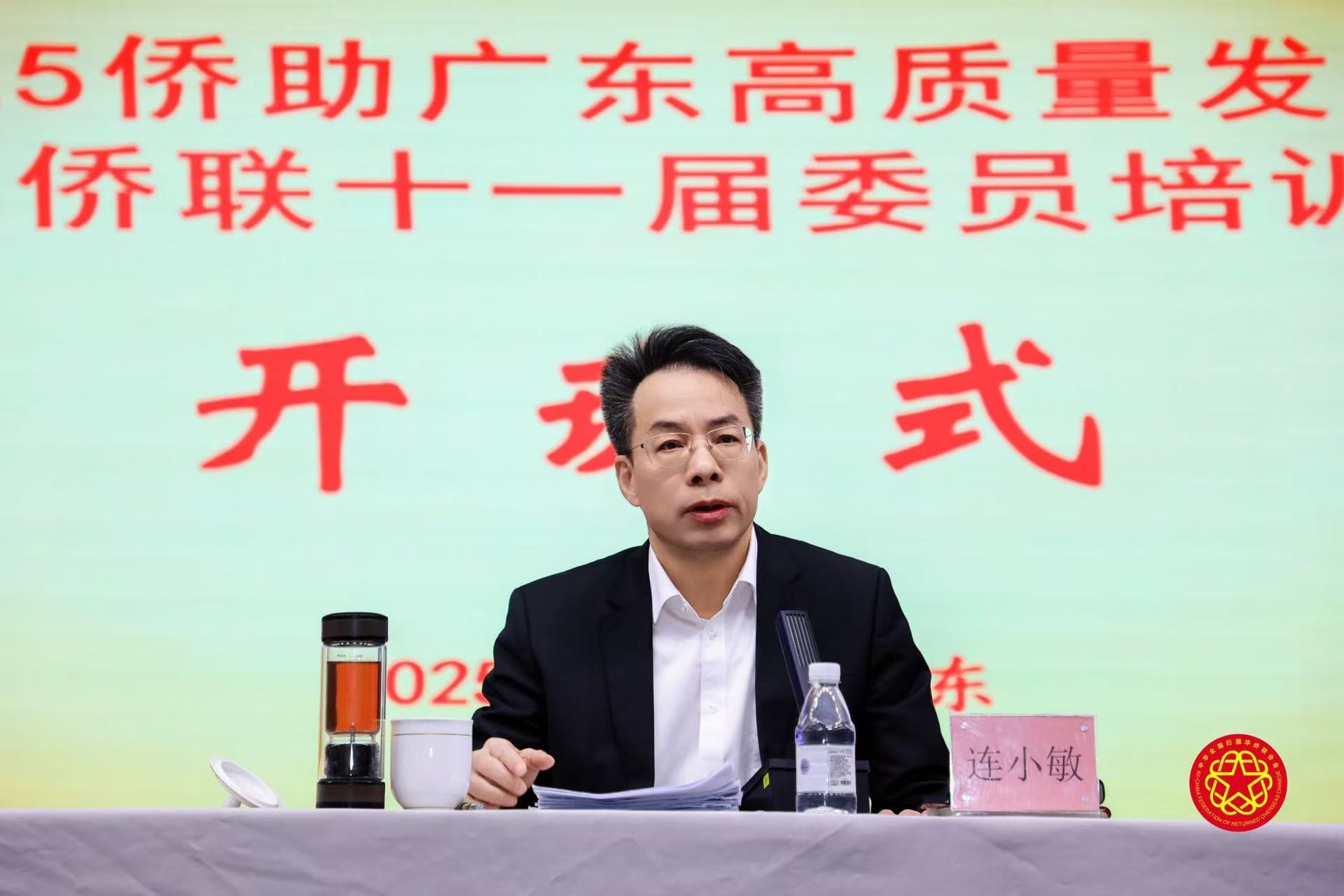 3月19日上午,“2025僑助廣東高質量發展”中國僑聯十一屆委員培訓班在廣州開班。中國僑聯黨組成員、副主席,直屬機關黨委書記連小敏出席開班式作開班動員并宣講全國兩會精神。中國僑聯兼職副主席,廣東省僑聯黨組書記、主席李豐出席開班式并致辭。