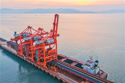 福建省福州市連江經濟開發區華電儲運碼頭,在福州邊檢站民警高效驗放后,一艘裝載7萬余噸煤炭的外輪正在入境靠泊,實現迎峰度夏電煤“零等待”裝卸。