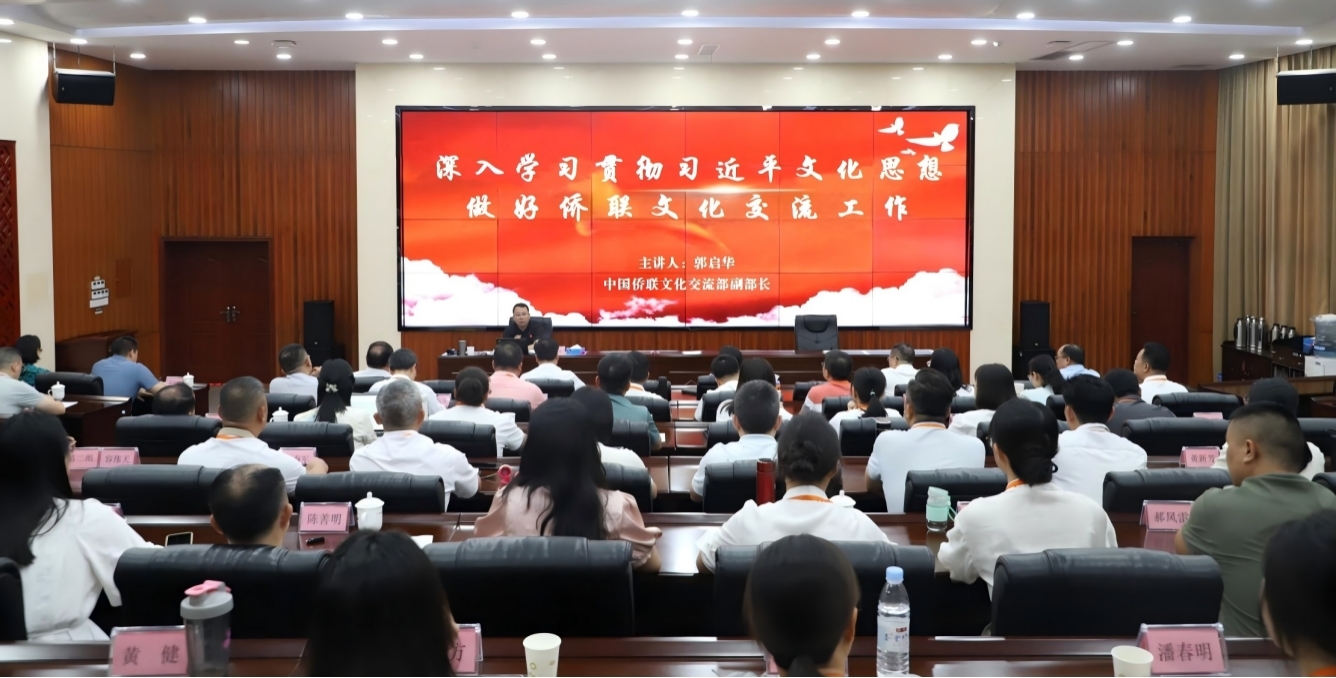 7月1日,在慶祝中國共產黨成立104周年之際,中國僑聯文化交流部副部長郭啟華在南寧以《深入學習貫徹習近平文化思想 做好僑聯文化交流工作》為題,為廣西壯族自治區僑聯干部、委員深入學習貫徹黨的二十屆三中全會精神培訓班授課,從文化有關的一些概念、文化工作的重要性、習近平文化思想、文化建設和文化體制機制改革的部署、意識形態領域的風險挑戰、僑聯文化交流工作的總體要求和主要工作、在僑聯文化交流工作中落實意識形態工作責任制等七個方面做了講解。