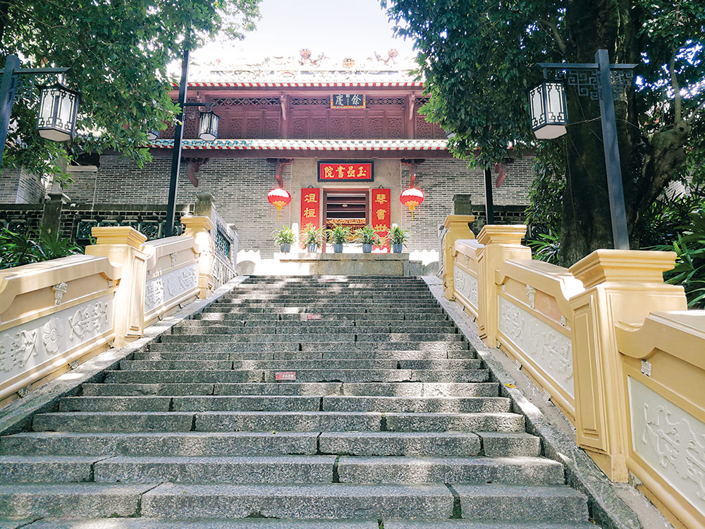 黃埔伏虎山下的蘿峰,山不高,風景卻絕佳,樹茂草盛,溪澗環(huán)流,曲徑通幽,常年云霧繚繞,晴空時,登峰遠眺,眼前景色盡收。玉巖書院披滿八月熱烈的陽光。微風吹拂,給人別樣的清涼。整個書院,依山隨勢,樓連樓,閣依閣,檐接檐,大多藏在樹蔭中。催詩臺前的荔枝樹,已經(jīng)千余歲,是廣州最老的荔枝樹,去年依然碩果累累。