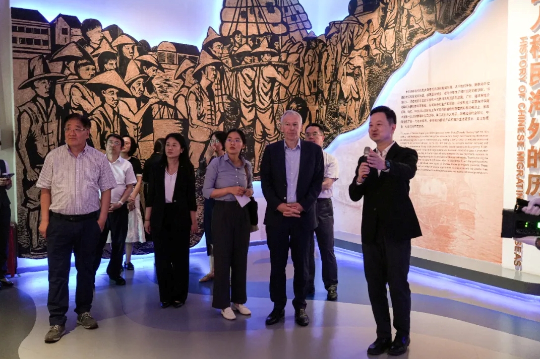 7月8日下午,來華參加全球文明對話部長級會議的比利時前首相伊夫·萊特姆(Yves Leterme)到訪中國華僑歷史博物館,通過參觀基本陳列“華僑華人歷史文化展”,探尋一戰華工的歷史記憶。中國華僑歷史博物館副館長(主持工作)寧一、副館長雷霆陪同參觀,中國社會科學院近代史研究所研究員張俊義受邀參與交流。