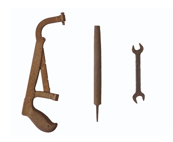 這一套修車工具包括鋸弓、半圓銼刀和固定扳手。李雯湘介紹說,父親十分珍視這些工具,解放后仍一直使用并精心保存。她深受父親“做一個對祖國對社會有用的人”教誨的影響,投身社區志愿服務,并積極促成南昌市青山湖區南鋼街道建設南僑機工主題街區,向當地民眾講述南僑機工可歌可泣的歷史故事。