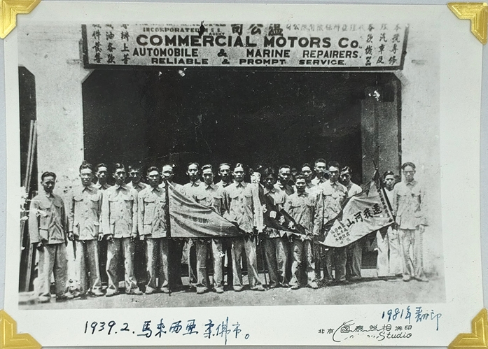 溫祺芳1914年出身于廣東梅縣,19歲移居馬來亞學習汽車修理,后在新山開設溫公司汽車修理鋪。1938年,他參加馬來亞抗敵后援會,并在1939年變賣溫公司,發起組織新山區華僑回國工程服務隊,作為第二批機工回國參戰。在回國前,機工們在溫公司門前留下了珍貴合影。到云南昆明后,溫祺芳進入西南運輸處貴陽第二修理廠。1940年5月,他和機工同伴一起開車到重慶,找到八路軍辦事處,經同行回國的機工介紹加入了八路軍。1941年2月,他開車抵達延安,同年11月加入中國共產黨。