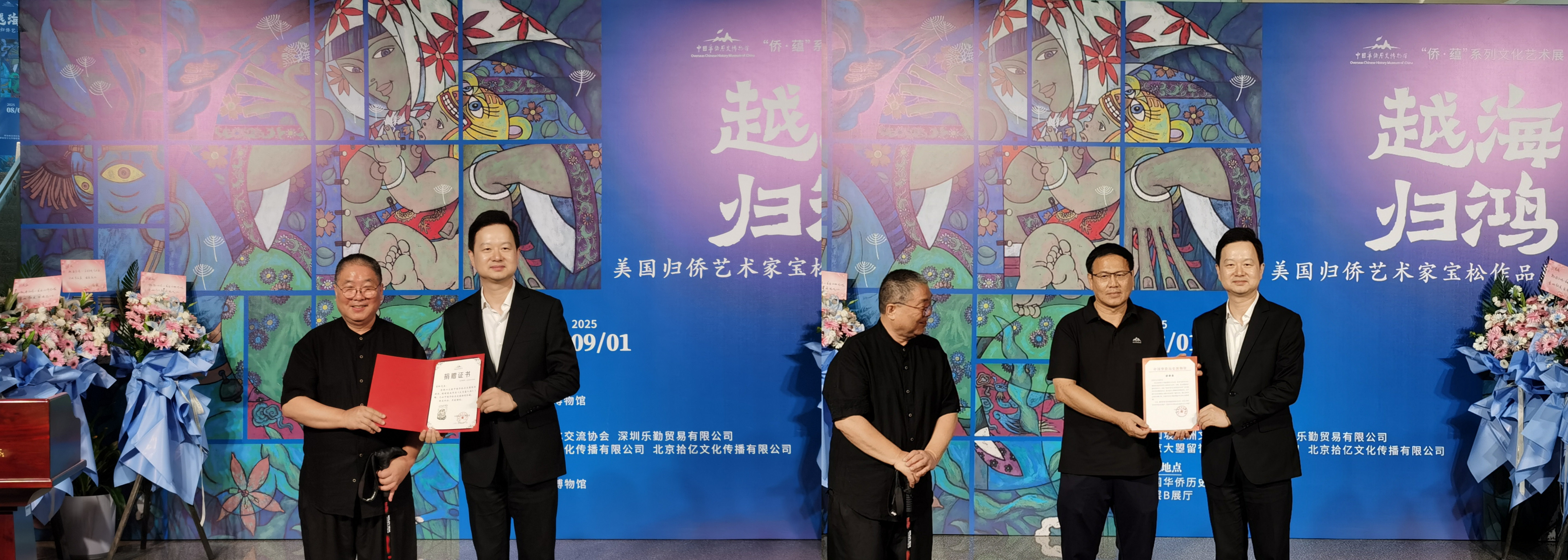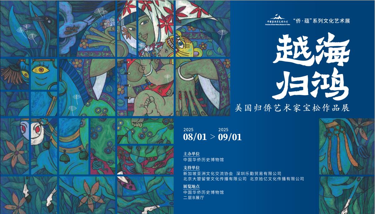 8月1日下午,由中國華僑歷史博物館主辦的“越海歸鴻——美國歸僑藝術家寶松作品展”在僑博開幕。