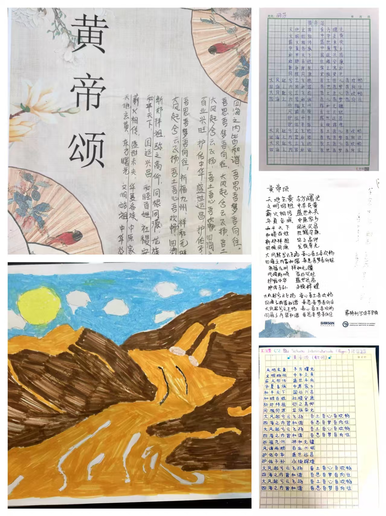 幾千年來,黃河不僅哺育了無數的中華兒女,還滋養了數不清的文藝作品。那些由黃河奔涌而出的動人音符,記載著中華民族悠久的文明歷史和厚重的文化內涵。在第四課上,鄭州大學音樂學院教師張建勛從講述黃河文化開始,通過講述歌曲《黃帝頌》的背景、講解歌詞釋義、逐句教唱,帶領營員們學習這首影響深遠的黃帝故里拜祖大典頌歌,讓海外華裔青少年通過音樂觸摸黃帝文化印記,增進“根”的文化認同、強化“親”的情感共鳴。小營員們通過抄寫《黃帝頌》歌詞、錄制演唱視頻,將對黃帝文化的感悟融入歌聲,以青春之聲傳遞對根親文化的理解與熱愛。