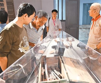 在吉隆坡南僑機(jī)工紀(jì)念館內(nèi),參觀者查看南僑機(jī)工們使用過(guò)的修路工具。