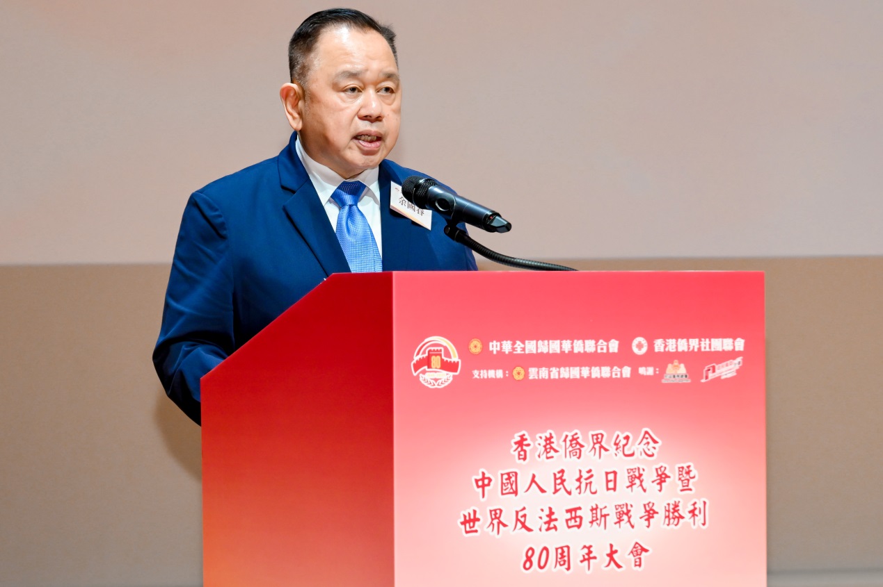 香港僑界社團聯會會長黃楚基在致辭中說,我們要永遠銘記海外僑胞在民族危難時刻所展現出的赤子丹心與團結精神,深刻理解他們與祖(籍)國人民命運與共、萬里同心的家國情懷,將偉大的抗戰精神轉化為實現民族復興的強大動力。