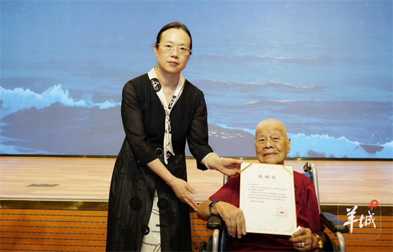 百歲歸僑、抗戰(zhàn)老兵鐘炳聰作為受訪者代表來到活動(dòng)現(xiàn)場