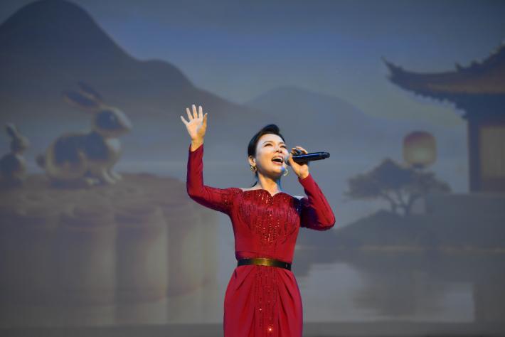 “明月幾時有,把酒問青天……”中華全國總工會文工團常務副團長兼藝術總監陳思思唱響歌曲《但愿人長久》和《燈火里的中國》,將現場氛圍推向高潮。“這兩首歌曲大家都耳熟能詳。文化如水,潤物無聲。我通過歌聲向僑胞們送上節日的祝福,也唱出偉大祖國日新月異的變化,用音樂藝術的力量凝聚人心、傳遞真善美。”她說。