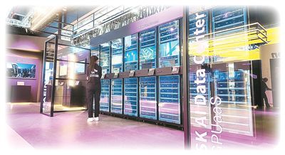 第八屆進博會技術裝備展區,韓國SK集團展位展出的AI數據中心。