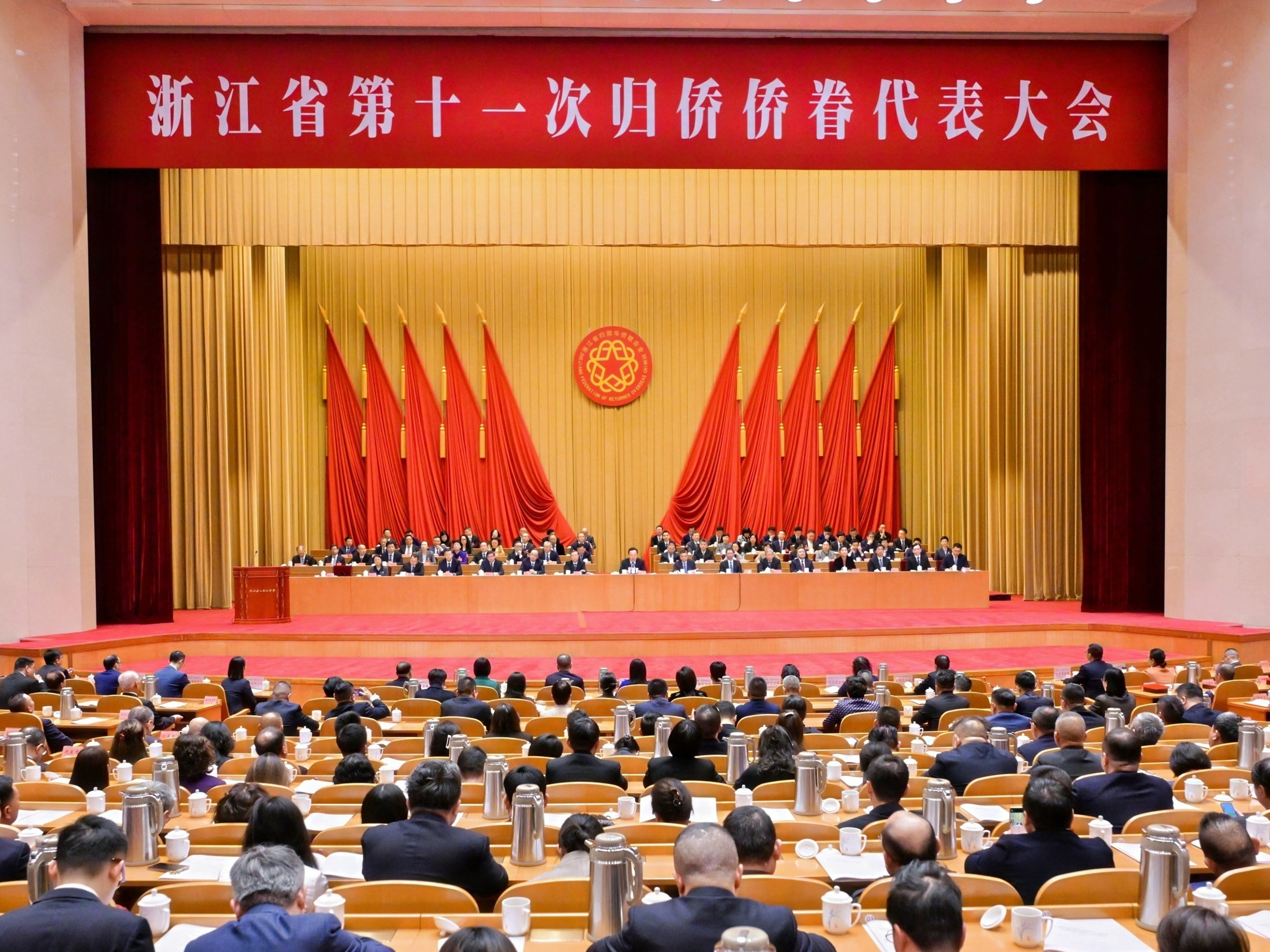 11月25日上午,浙江省第十一次歸僑僑眷代表大會在杭州開幕。浙江省委書記、省人大常委會主任王浩,中國僑聯黨組成員、副主席高峰出席開幕式并講話。浙江省委副書記、省長劉捷,省政協主席廉毅敏等出席會議。